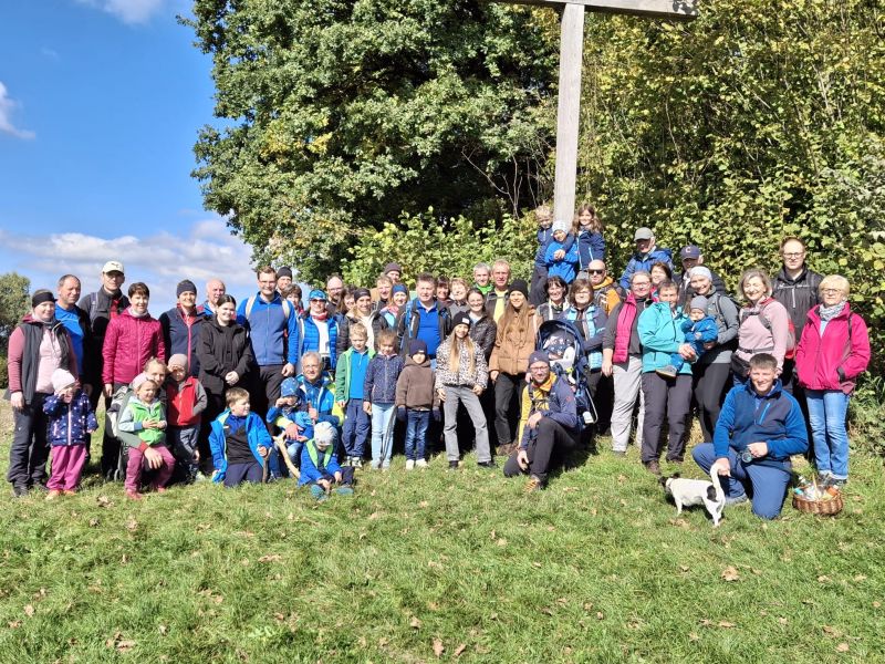 Vor dem Start in die Wintersaison organisierte die DJK-Skiabteilung eine Familienwanderung rund um den Gallner. Mehr als 50 Personen beteiligten sich bei herrlichen Herbstwetter und bestem Panoramablick. Nach der gemeinsamen Abfahrt in Vilzing startete die Gruppe bei Monika Urban. Der Rundweg führte über Landorf und Denkzell zum Gipfelkreuz des Gallners, wo Monika bereits mit dem Gipfelschnaps wartete. Nach einer kurzen Pause kehrte die Gruppe zurück zum Ausgangspunkt. Zum Abschluss der Wanderung bereite Familie Urban eine zünftige Brotzeit vor. Monika ist ein Urgestein und Übungsleiterin der Skiabteilung und betreibt eine kleine Gaststätte welche nur bei besonderen Anlässen (Betriebsfeier, Geburtstage, Hochzeiten, …) geöffnet hat.